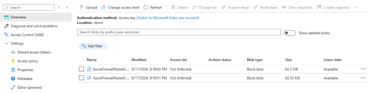 Erstellen Sie ein Speicherkonto, und rufen Sie eine SAS-URL für einen Container ab, in dem die erfassten Pakete gespeichert sind.