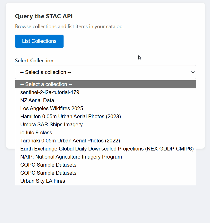 - Abfragen der STAC-API zum Ermitteln von Sammlungen und Elementen