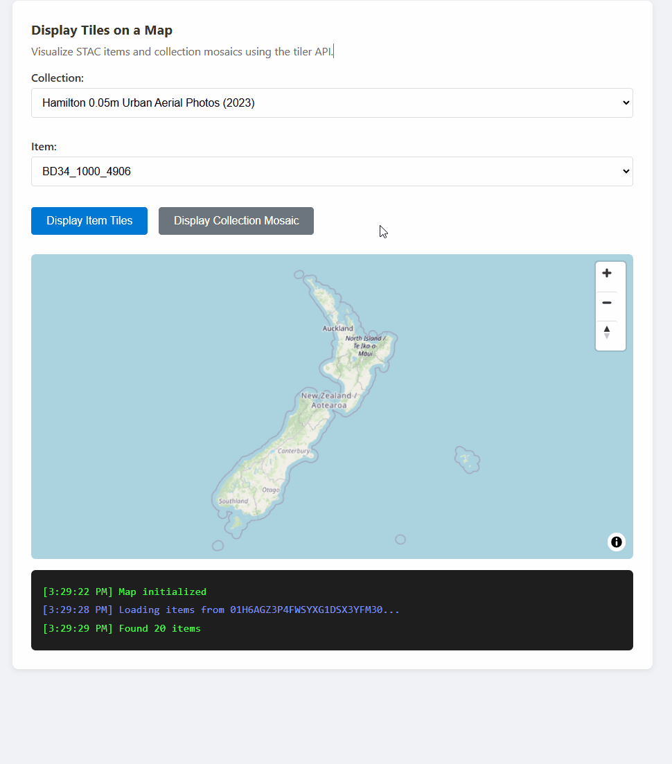 Die Codemuster funktionieren mit jedem modernen JavaScript-Framework (React, Vue, Angular) oder Vanille-JavaScript. GeoCatalog-APIs verfügen über vollständige CORS-Unterstützung, sodass Sie sie während der localhost Entwicklung direkt aufrufen können – kein Proxy erforderlich.