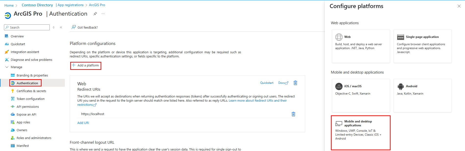 <https://localhost>hinzu. Wählen Sie "Konfigurieren" aus.Kehren Sie zur Authentifizierung>zurück, fügen Sie eine Plattform hinzu, und wählen Sie dann Mobile- und Desktopanwendungen aus.
