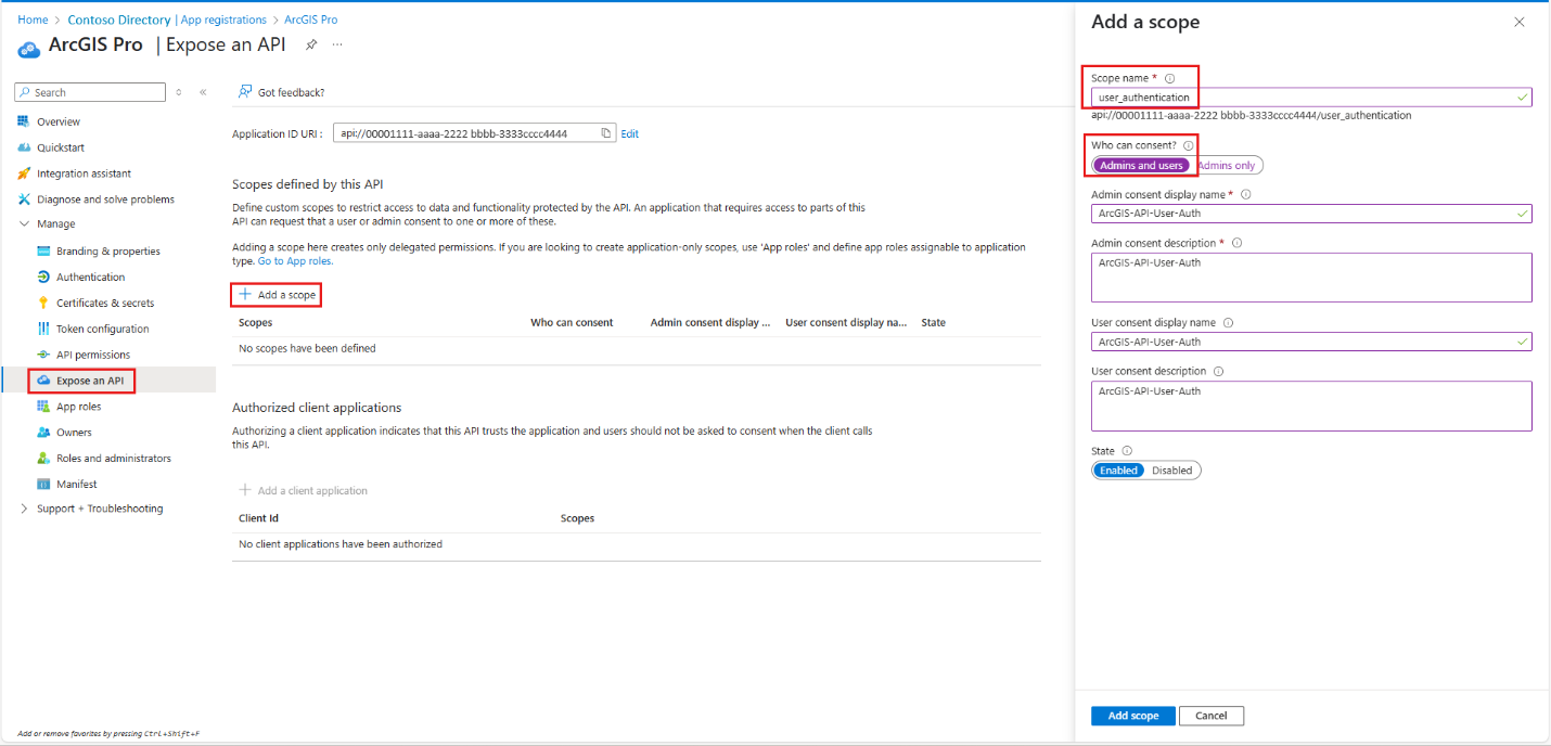 Wechseln Sie in Ihrer neuen App (in unserem Beispiel ArcGIS Pro genannt) zu "Authentifizierung>Hinzufügen eines>".
