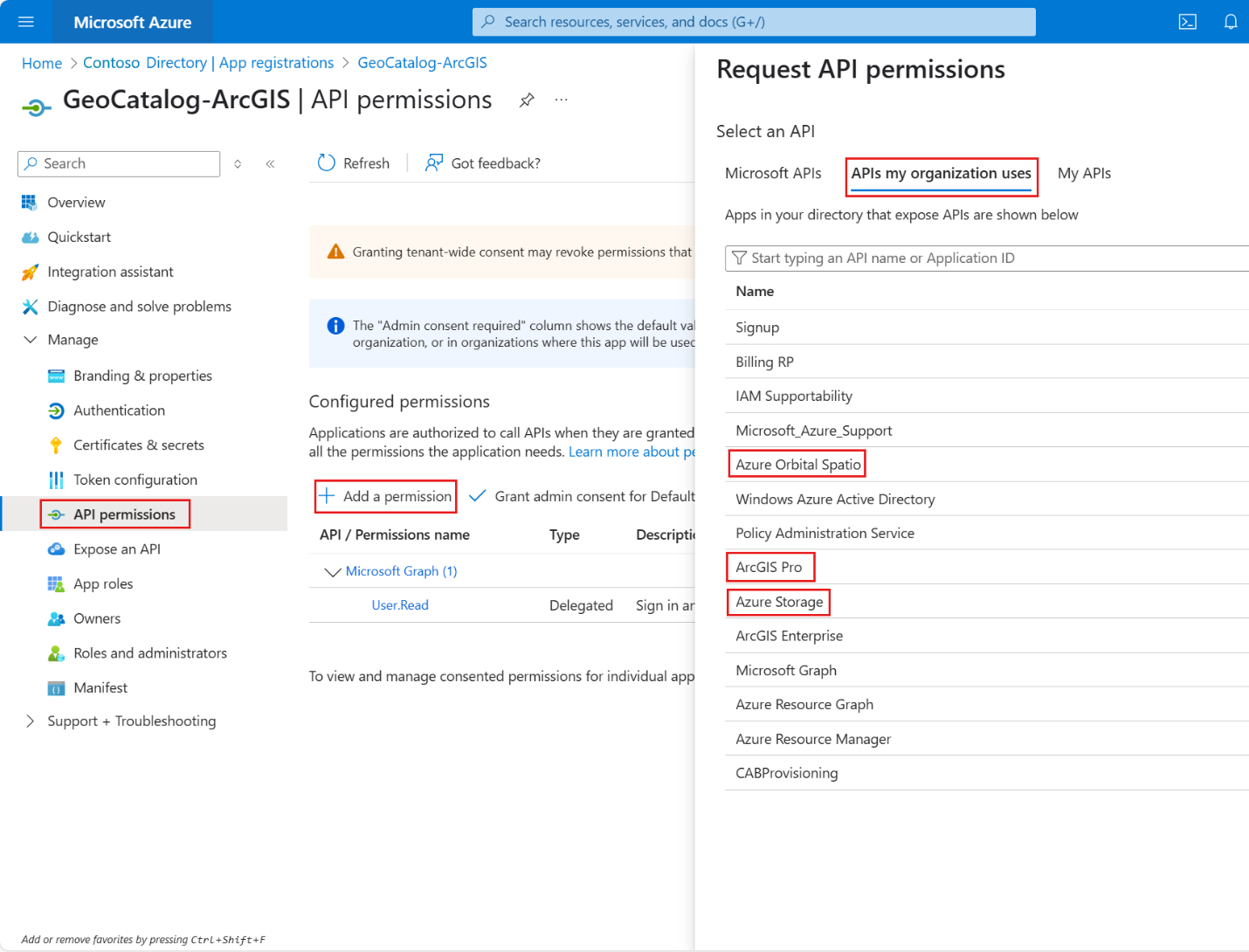 user_impersonationScope. - Verbinden Sie in der Microsoft Planetary Computer Pro-Umgebung ArcGIS Pro mit Azure Blob Storage und SpatioTemporal Asset Catalog (STAC)-kompatiblen Datasets.