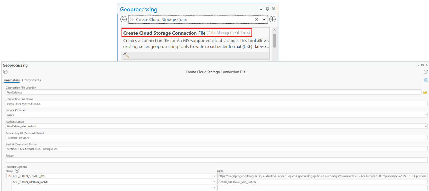 https://arcgisprogeocatalog.<unique-identity>.<cloud-region>.geocatalog.spatio.azure.com/sas/token/sentinel-2-l2a-tutorial-1000?api-version=2025-04-30-previewFügen Sie die Anbieteroption ARC_TOKEN_OPTION_NAME hinzu, und legen Sie den Wert auf AZURE_STORAGE_SAS_TOKEN fest.