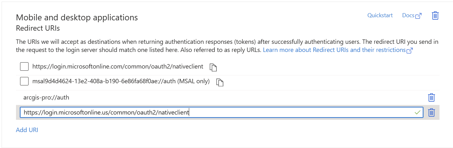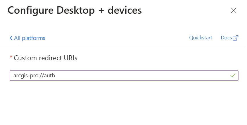 Konfigurieren Sie die Desktopclient-App. In diesem Beispiel wird der Name GeoCatalog-ArcGIS verwendet. Wiederholen Sie die Schritte aus der ersten App-Registrierung: