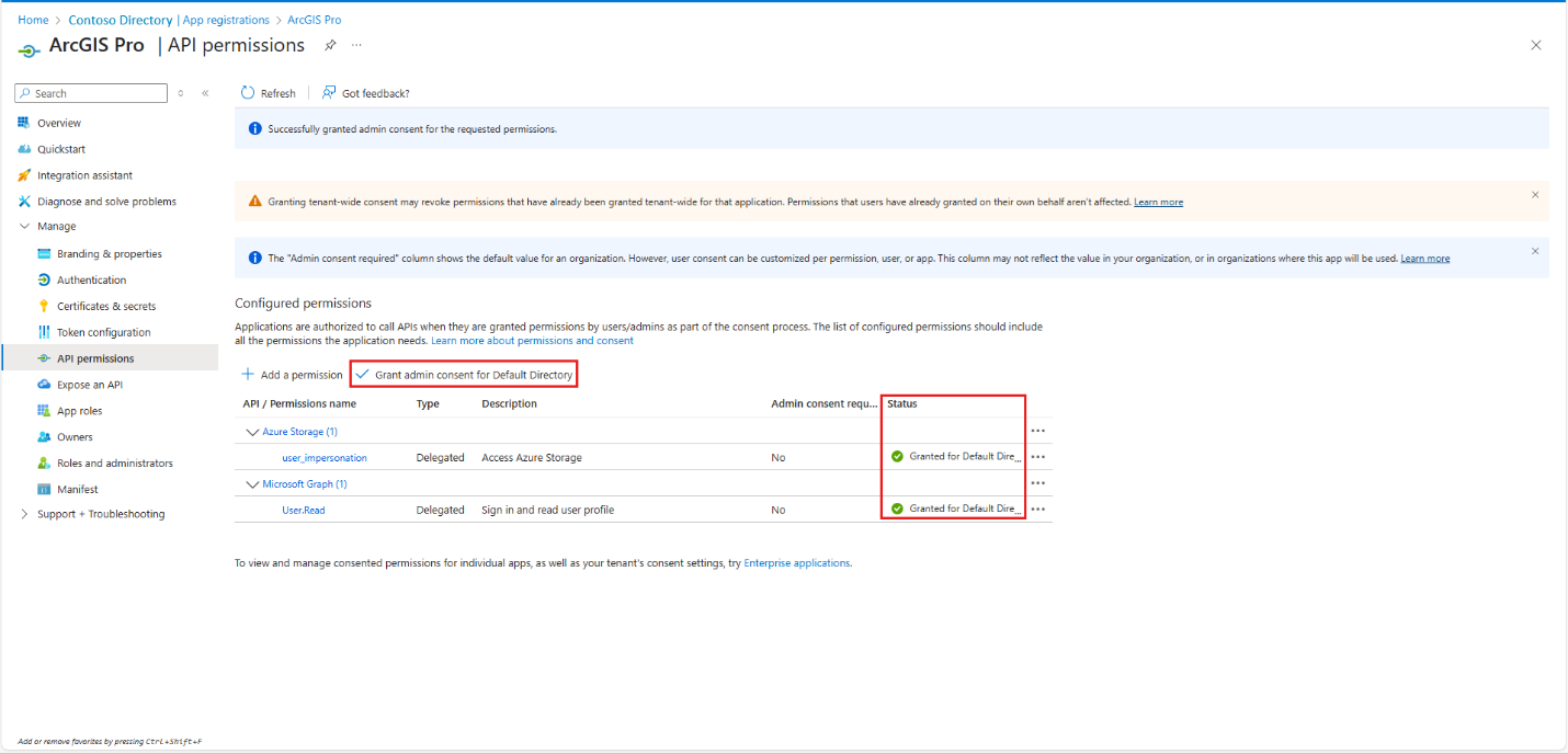 Nachdem Sie Berechtigungen hinzugefügt haben, wählen Sie " Administratorzustimmung für Das Standardverzeichnis erteilen" aus.