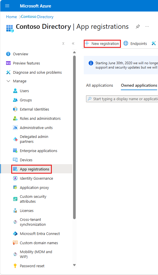 Wechseln Sie zu "App-Registrierungen>Neue Registrierung".