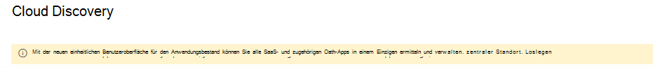 Navigieren Sie im Defender-Portal unter https://security.microsoft.comzu Ressourcenanwendungen>. Oder navigieren Sie direkt zur Seite Anwendungen , indem Sie auf die Bannerlinks auf den vorhandenen Cloud Discovery- und App-Governance-Seiten klicken.