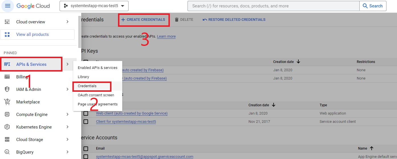 Kehren Sie im Navigationsmenü zu APIs & Services>Credentials zurück.