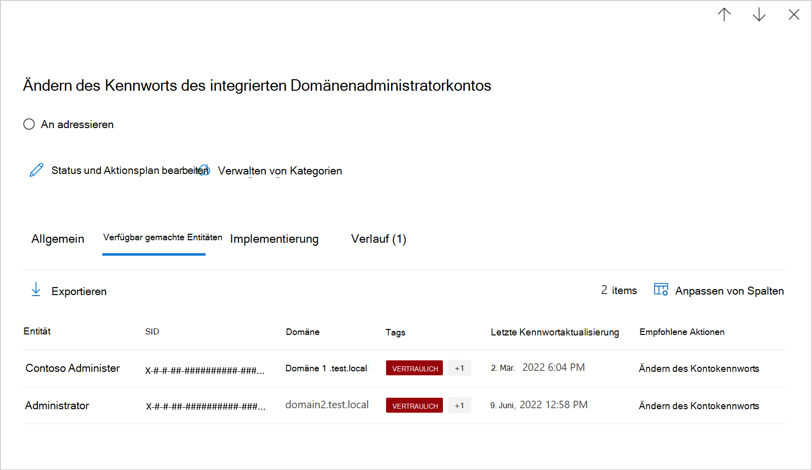 Die regelmäßige Aktualisierung des Kennworts des integrierten Administratorkontos ist aufgrund seiner hohen Berechtigungen unerlässlich, die es zu einem hauptanfälligen Ziel für Angreifer machen. Wenn es kompromittiert wird, kann es nicht autorisierte Kontrolle über die Domäne gewähren. Da dieses Konto häufig nicht verwendet wird und das Kennwort möglicherweise nicht häufig aktualisiert wird, verringern regelmäßige Änderungen die Gefährdung und erhöhen die Sicherheit.