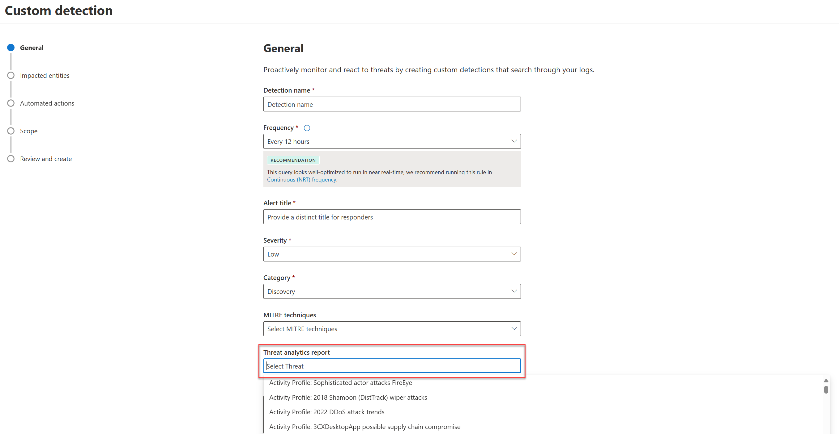 Einrichten benutzerdefinierter Erkennungen und Verknüpfen dieser Erkennungen mit Bedrohungsanalyseberichten