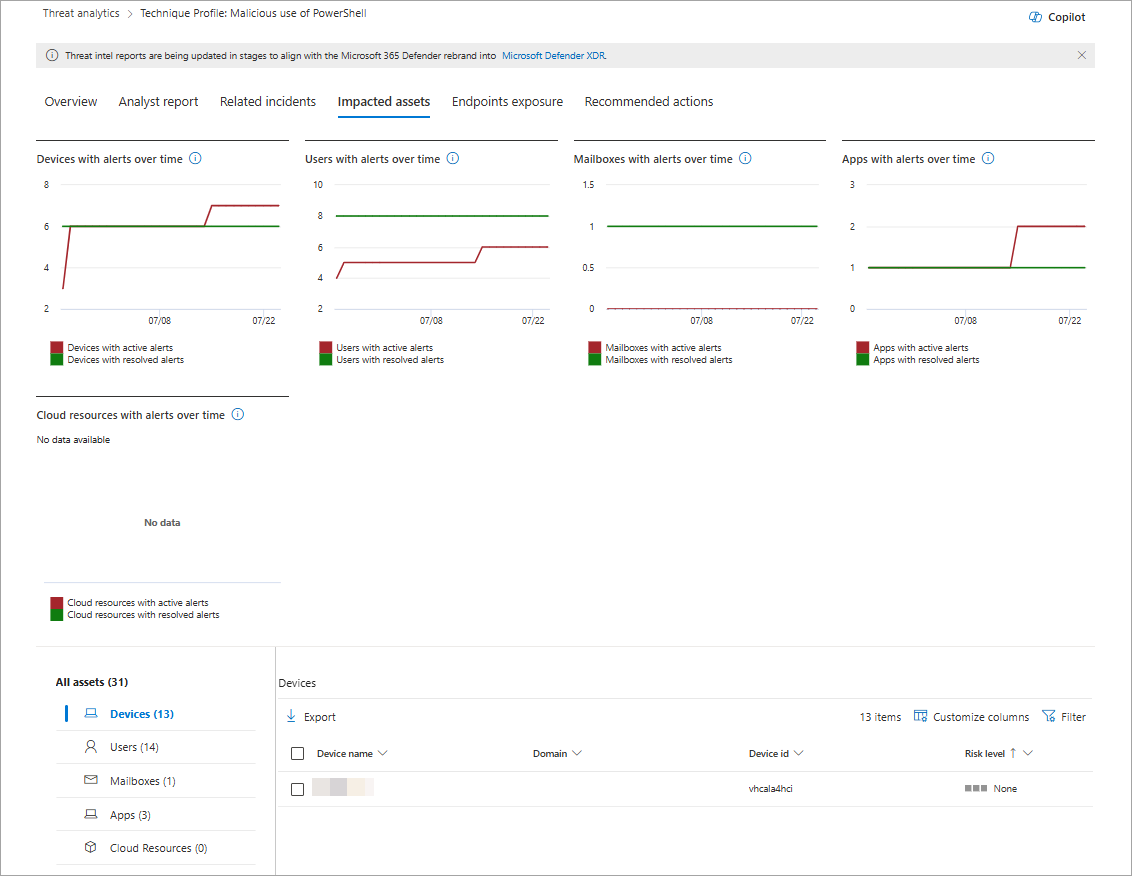 Beeinträchtigte Ressourcen: Abrufen einer Liste der betroffenen Geräte, Benutzer, Postfächer, Apps und Cloudressourcen