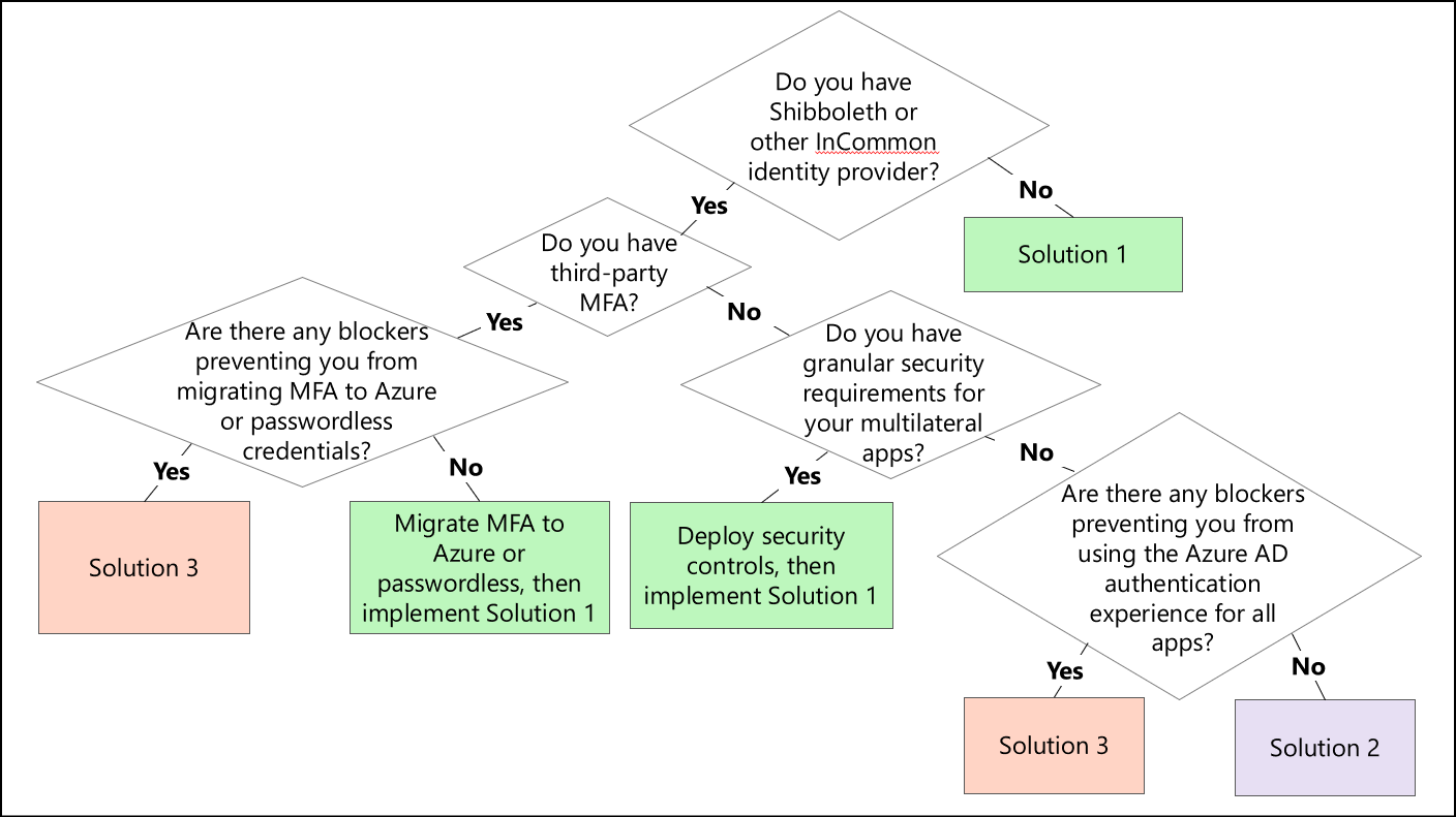 Verwenden Sie diesen Entscheidungsbaum, um die für Ihre Umgebung am besten geeignete multilaterale Verbundlösung zu ermitteln.