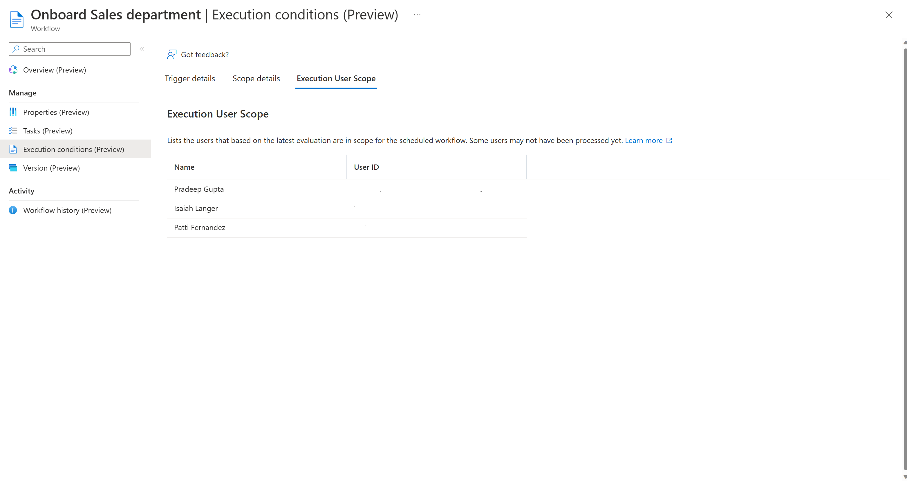 Überprüfen des Ausführungsbenutzerumfangs eines Workflows mithilfe des Microsoft Entra Admin Centers
