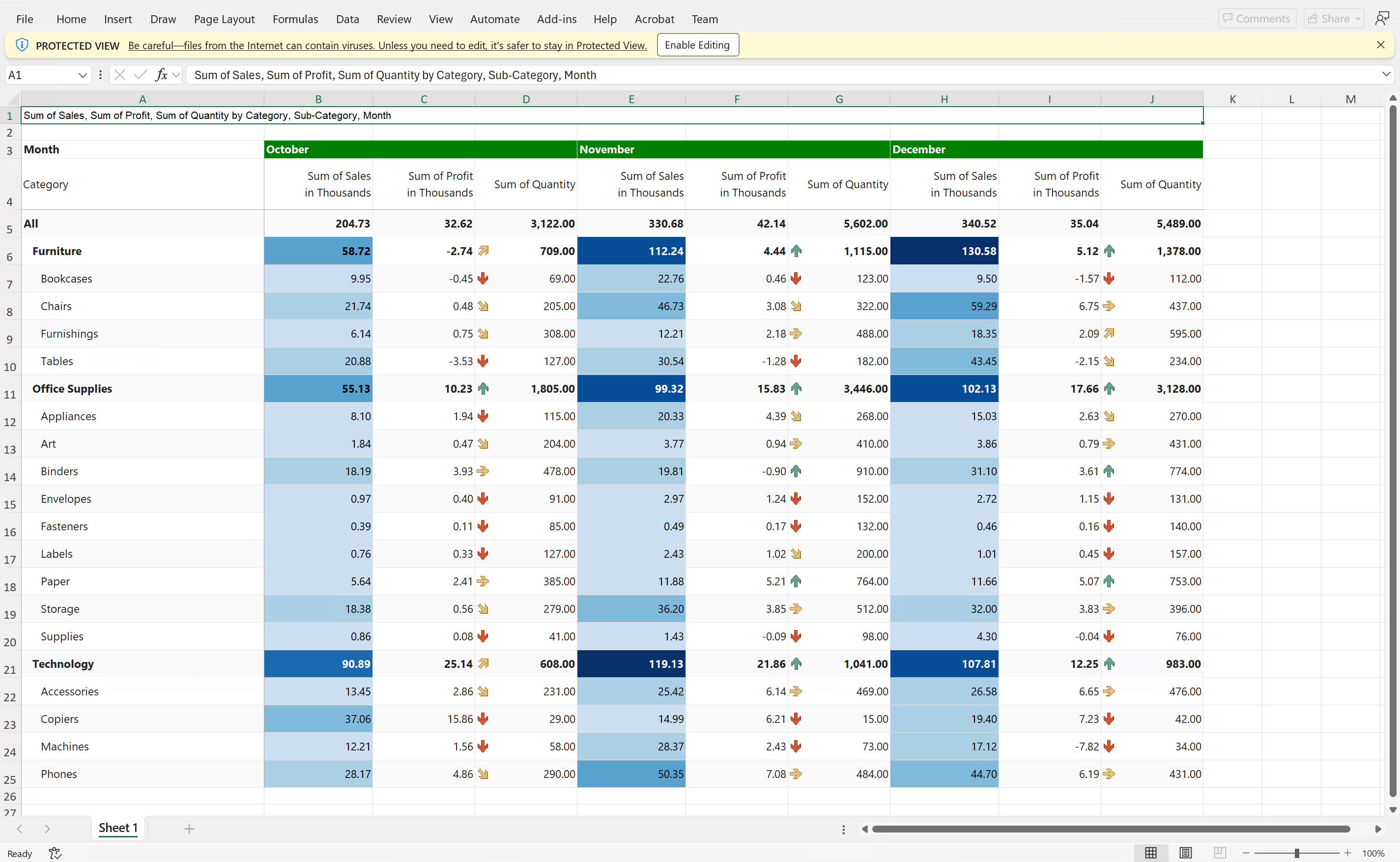 Tabellarische Berichte können in Excel exportiert werden, wobei die bedingte Formatierung vollständig erhalten bleibt.