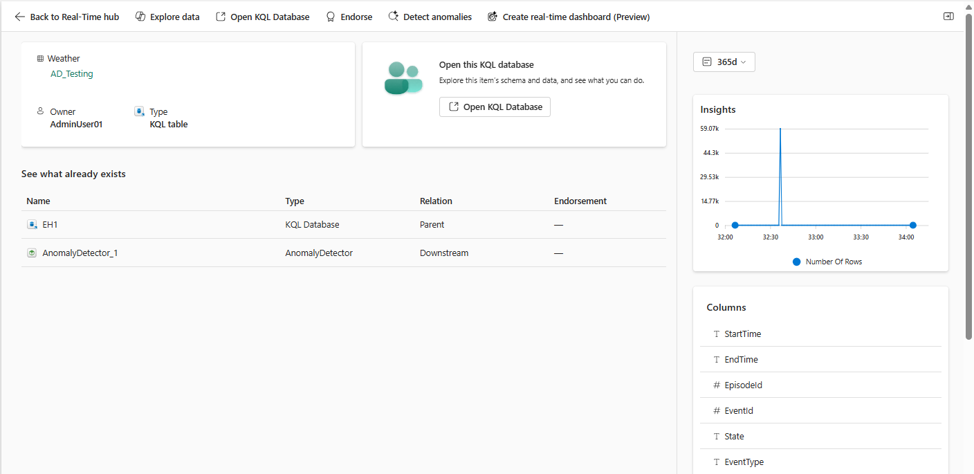 | Endorse | Empfehlen Sie die übergeordnete KQL-Datenbank der KQL-Tabelle. Weitere Informationen finden Sie unter Unterstützen von Streams. |
