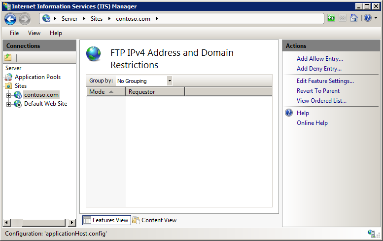 Bearbeiten der Featureeinstellungen für IP-Einschränkungen für eine FTP-Site