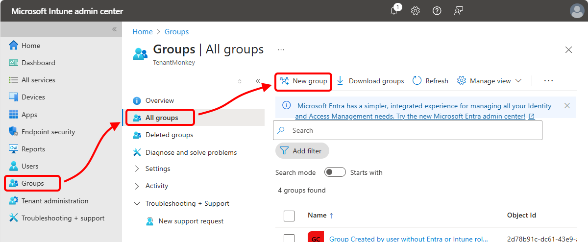 So erstellen Sie Gruppen im Microsoft Intune Admin Center: