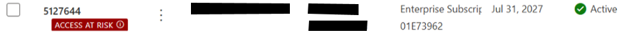 - Auf der Seite Verträge werden in der Liste Lizenz-IDs mit dem Access AT RISK-Tag angezeigt.