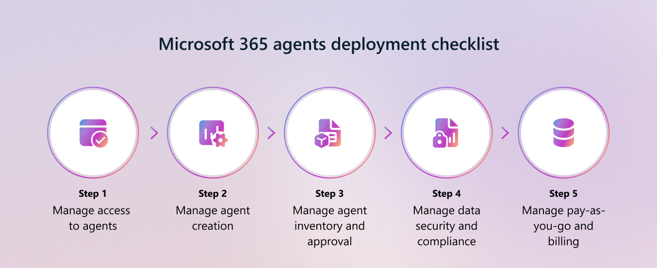 | 1 | Verwalten des Zugriffs auf Agents in Microsoft 365 | Steuern Sie, wie Ihre Benutzer mit Agents interagieren: