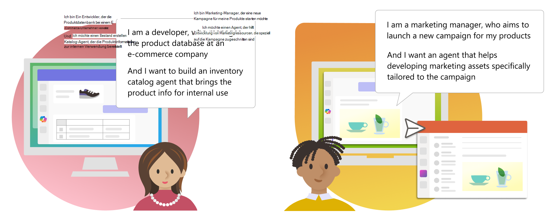 Mit Aktionen können Sie Agents aufleuchten, die im Kontext von Microsoft 365 Copilot arbeiten, oder Sie können sie verwenden, um Agents, die in immersiven Umgebungen arbeiten, z. B. deklarative Agents, Fähigkeiten bereitzustellen.