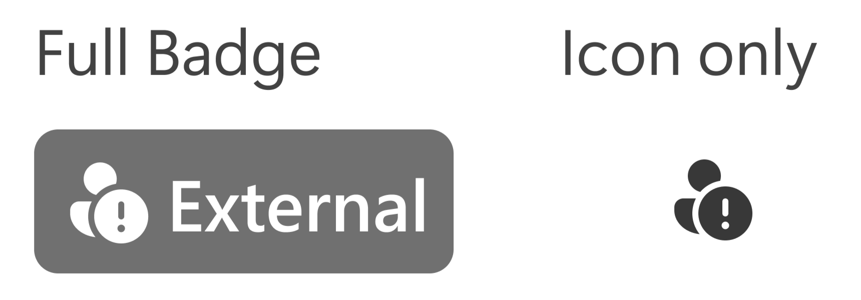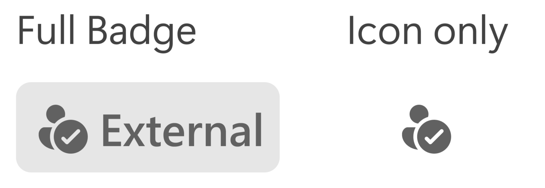 Vertrauensindikatoren in Teams werden bewusst in mehreren visuellen Formaten entworfen, sodass sie effektiv und dennoch unaufdringlich in allen Umgebungen bleiben. Es gibt zwei Badgevarianten: