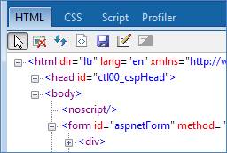 Zum Verwenden des Profilerstellungsmodus wählen Sie die Registerkarte „Profiler“ oben links im Fenster aus. Zum Starten der Profilerstellung klicken Sie oben im Fenster auf die Schaltfläche Profilerstellung starten. Der Profiler beginnt dann, Websites zu analysieren, die in Windows Internet Explorer gerendert werden. Für die Profilerstellung für eine Website navigieren Sie zur URL. Der Profilerstellungsmodus sammelt dann Daten, während die Seite gerendert wird. Klicken Sie auf die Schaltfläche Profilerstellung beenden, um den Bericht anzuzeigen, der von Profiler generiert wird. Abbildung 13 zeigt den Profilerstellungsmodus mit einem geladenen Bericht.