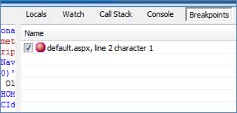 Hinweis**:** Selbst wenn Sie von der aktuellen Website weiter navigieren, behält Windows Internet Explorer die Haltepunktinformationen bei, bis Sie die Entwicklertools schließen.
