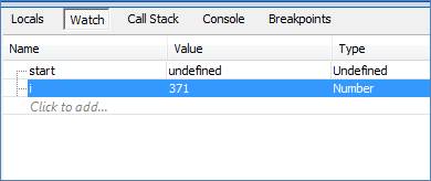 Sie können auch eine Überwachungsvariable hinzufügen, indem Sie auf den Text Zum Hinzufügen von... klicken im Fenster Überwachen klicken und den Namen der Variablen eingeben.