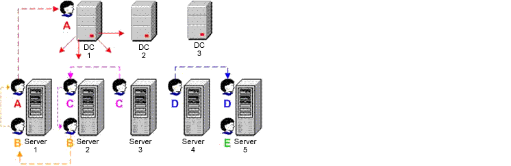 Über Datenadministratorkonten werden die im Verzeichnisdienst gespeicherten Daten auf Domänenmitgliedsservern und Arbeitsstationen in der Domäne verwaltet.