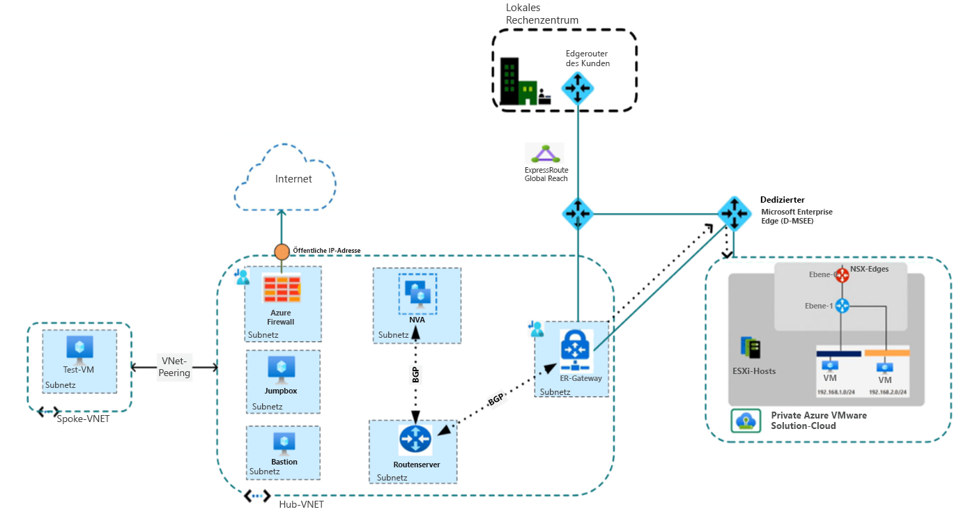 Am Ende dieses Moduls erfahren Sie, wie Sie ausgehende Internetkonnektivität sicherer über die private Azure VMware Solution-Cloud mit einer benutzerdefinierten NVA, Azure Route Server und Azure Firewall verwalten.