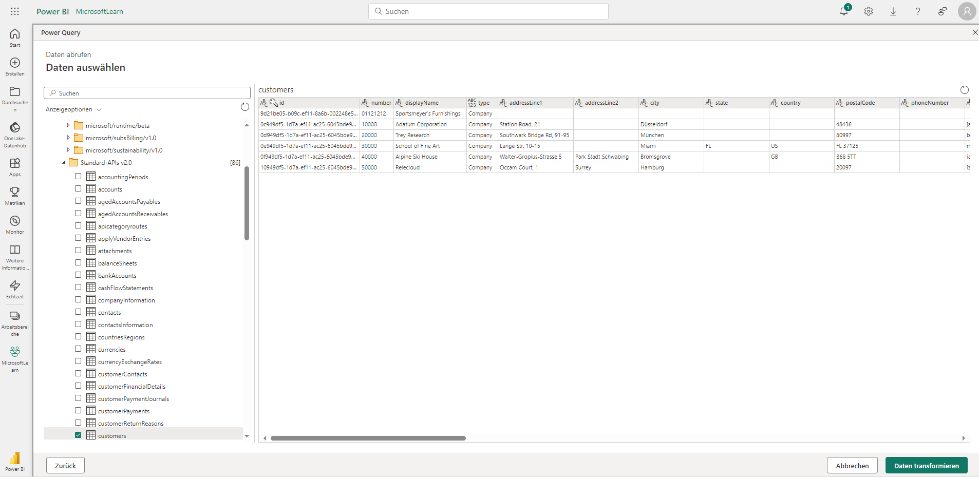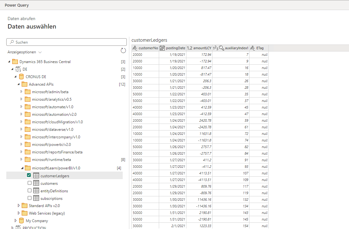 Einen Power BI-Dataflow in Business Central-Daten erstellen