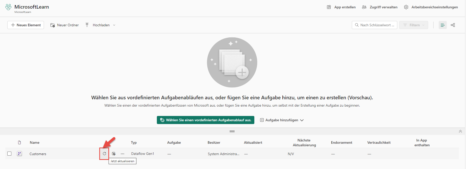 Aktualisieren Sie jetzt Ihren Dataflow.