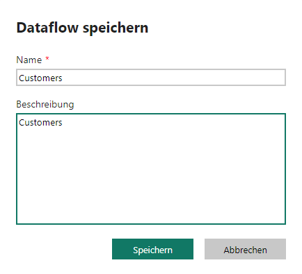Geben Sie dem Dataflow einen Namen, zum Beispiel Kunden: