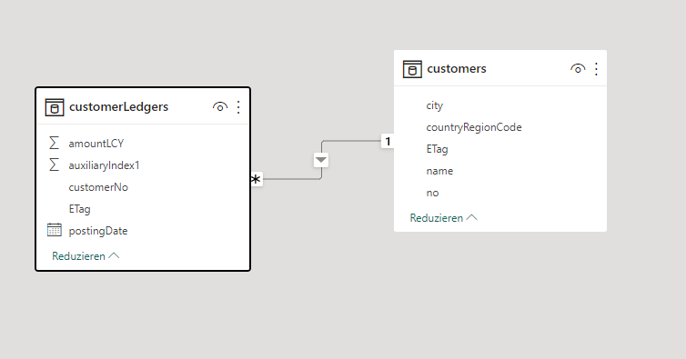 Jetzt können Sie die Daten in den Tabellen verwenden, wie wenn Sie jeden anderen Power BI-Bericht entwickeln.