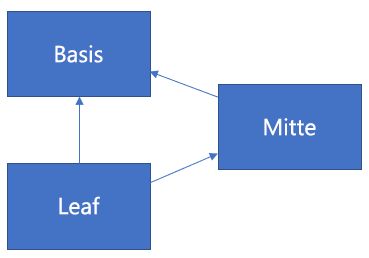 Beispielsweise hängt in einem Arbeitsbereich mit drei Projekten Leaf, Middle und Base Leaf von Middle und Base ab, und Middle hängt von Base ab, wie im folgenden Diagramm dargestellt: