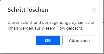 Schritt löschen – Sie können Schritt löschen, in dem Sie sich momentan befinden. Ein Dialogfeld wird angezeigt, in dem Sie bestätigen können, dass Sie den Schritt löschen möchten.