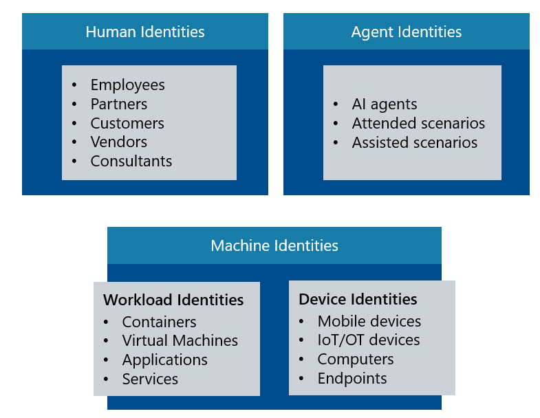 Wenn Sie die Frage „Was kann ich in Microsoft Entra ID einer Identität zuordnen?“ stellen, gibt es drei Kategorien.