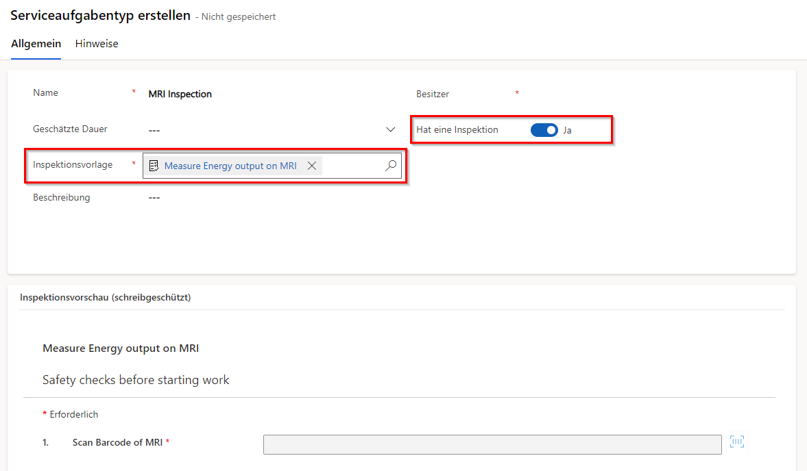 Field Service-Administratoren – Erstellen Sie Inspektionsvorlagen und ordnen Sie diese Serviceaufgabentypen zu.