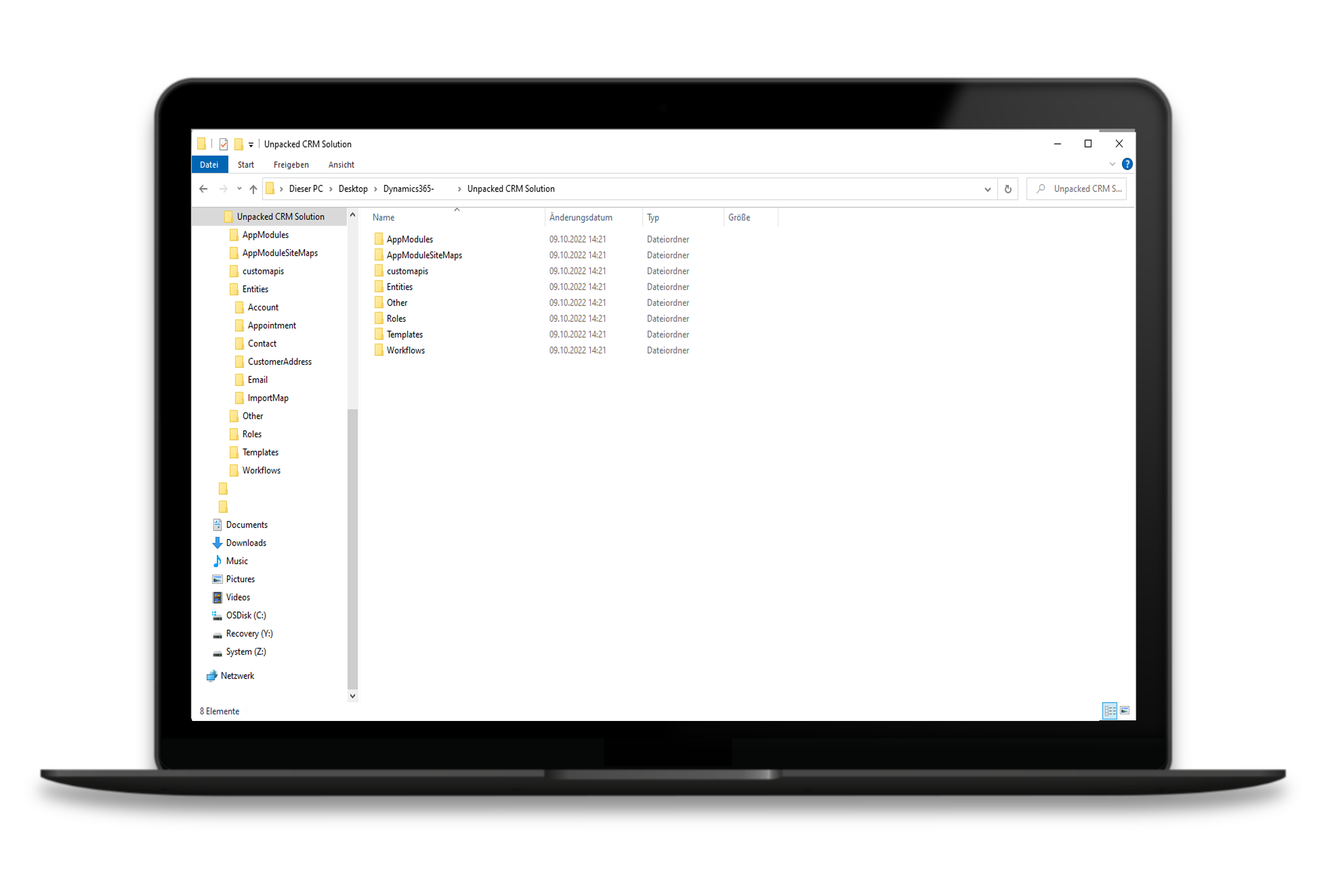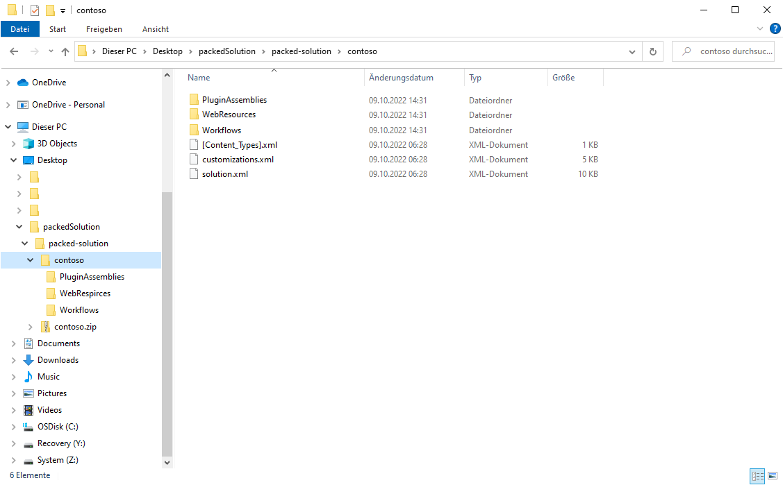 Beim Export aus einer Umgebung haben Lösungen die Form einer ZIP-Datei. Im komprimierten Format befindet sich die Schemadefinition in einer großen Datei mit der Bezeichnung customizations.xml.