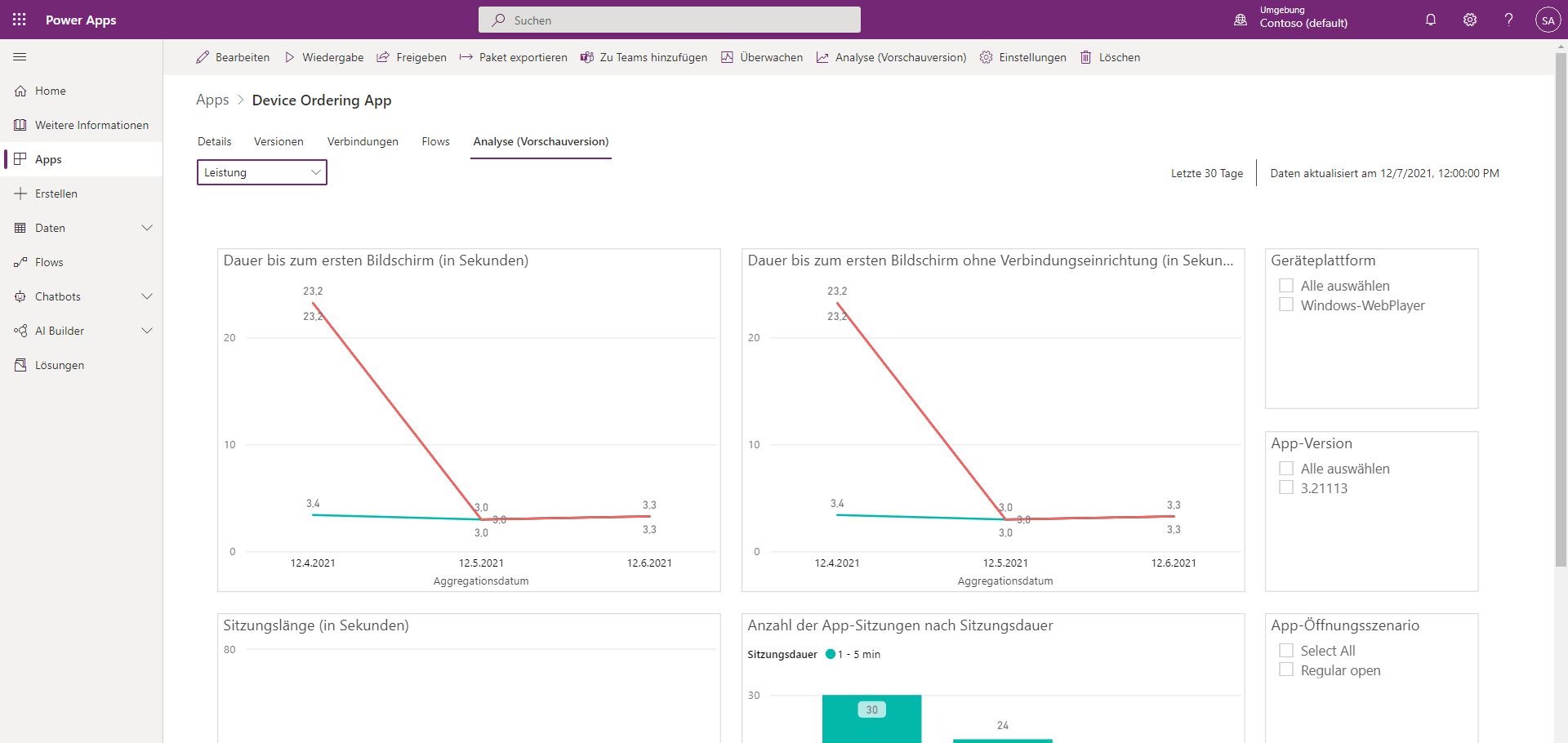 Die Daten werden für die letzten 30 Tage bereitgestellt und können bei der Bereitstellung einer Zusammenfassung der Leistung Ihrer App hilfreich sein.
