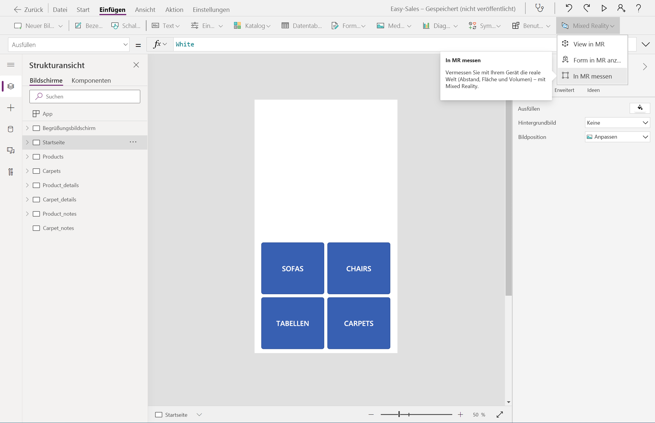 Übung: „In MR messen“ und Filtern in Power Apps