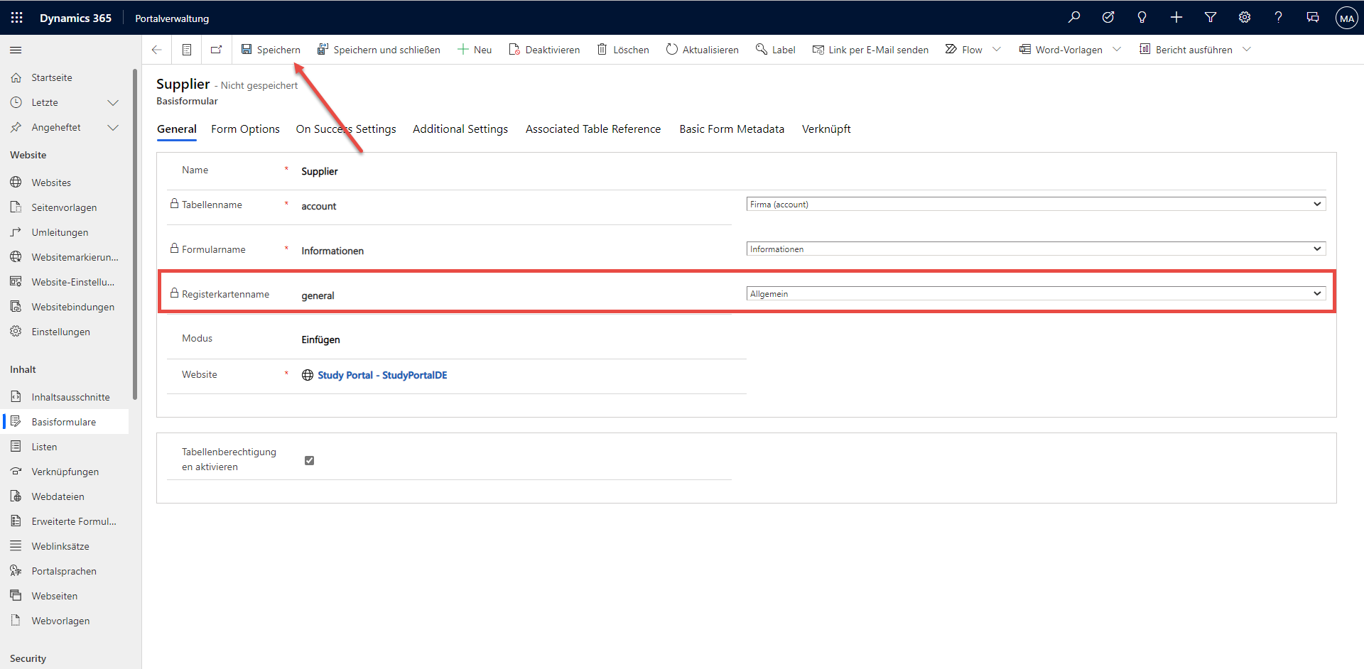 Weitere Informationen zum Einrichten von Formularen in der App Portalverwaltung finden Sie unter Über Basisformulare.