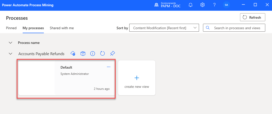 Der von Ihnen erstellte Prozess sollte angezeigt werden. Öffnen Sie die Ansicht Standard.