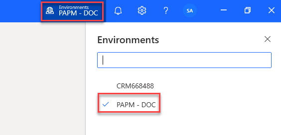 Wählen Sie den Namen der Umgebung und dann die Umgebung aus, in der Sie den Prozess erstellt haben.