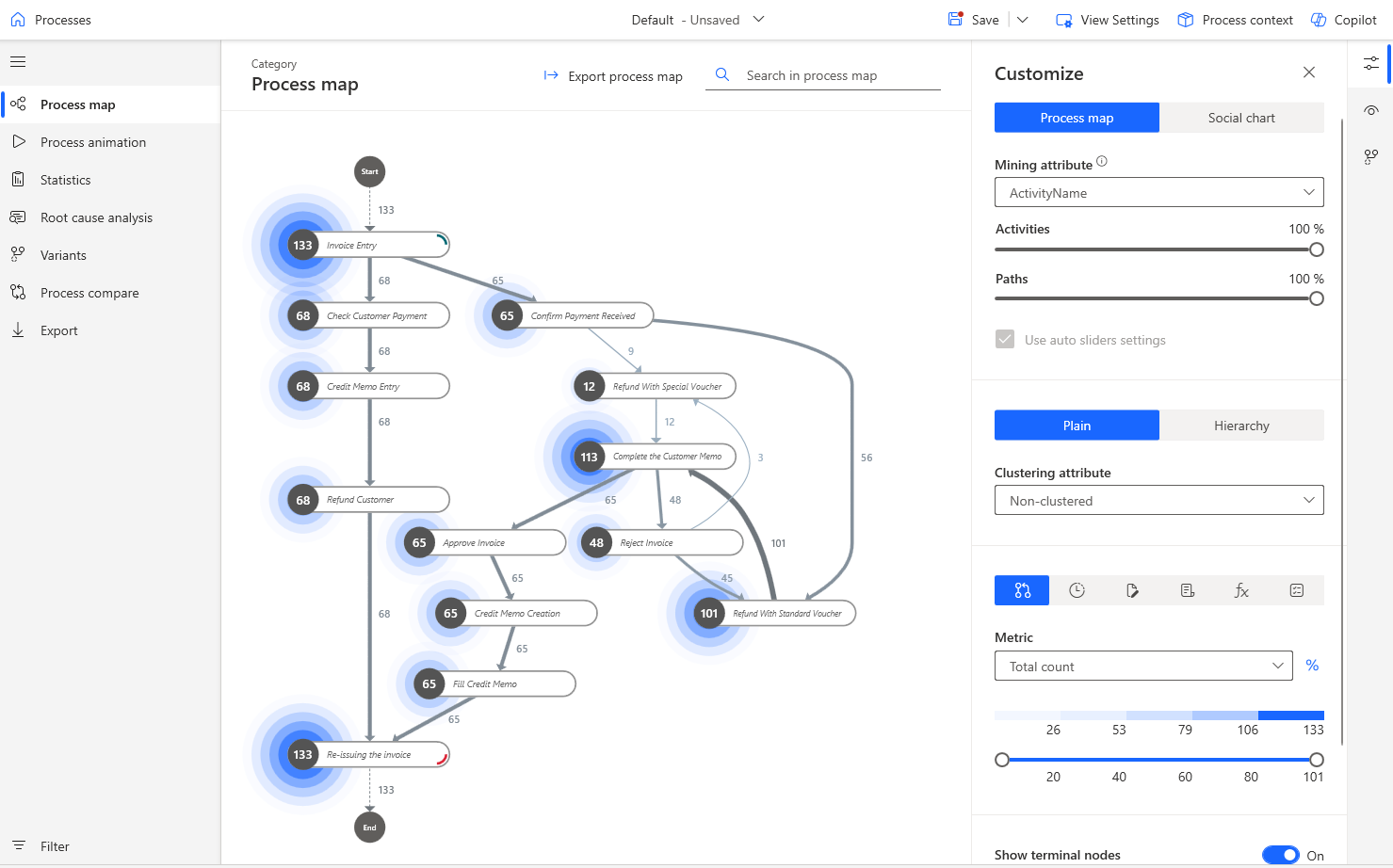 Wählen Sie im linken Navigationsbereich die Option Prozess-Mining aus.