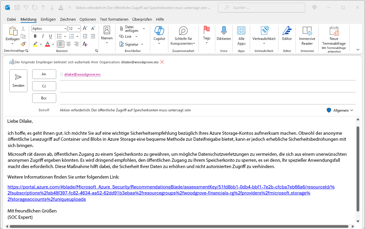 Wählen Sie Risiko mit Copilot reduzieren aus.