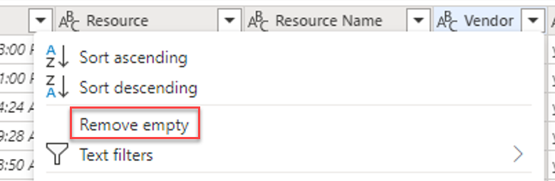 Mit der Option Leere entfernen können Sie Zeilen entfernen, die Nullwerte oder leere Werte enthalten.