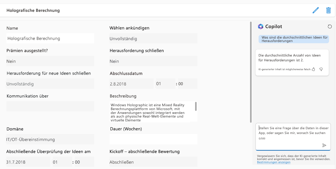 Weitere Informationen finden Sie unter Copilot-Steuerelement einer Canvas-App hinzufügen.