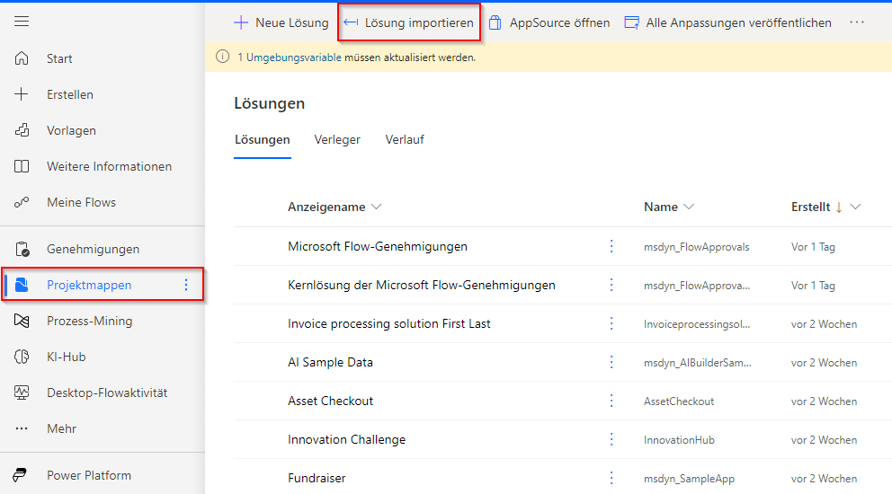 Befolgen Sie diese Schritte, um die Lösung zu importieren: