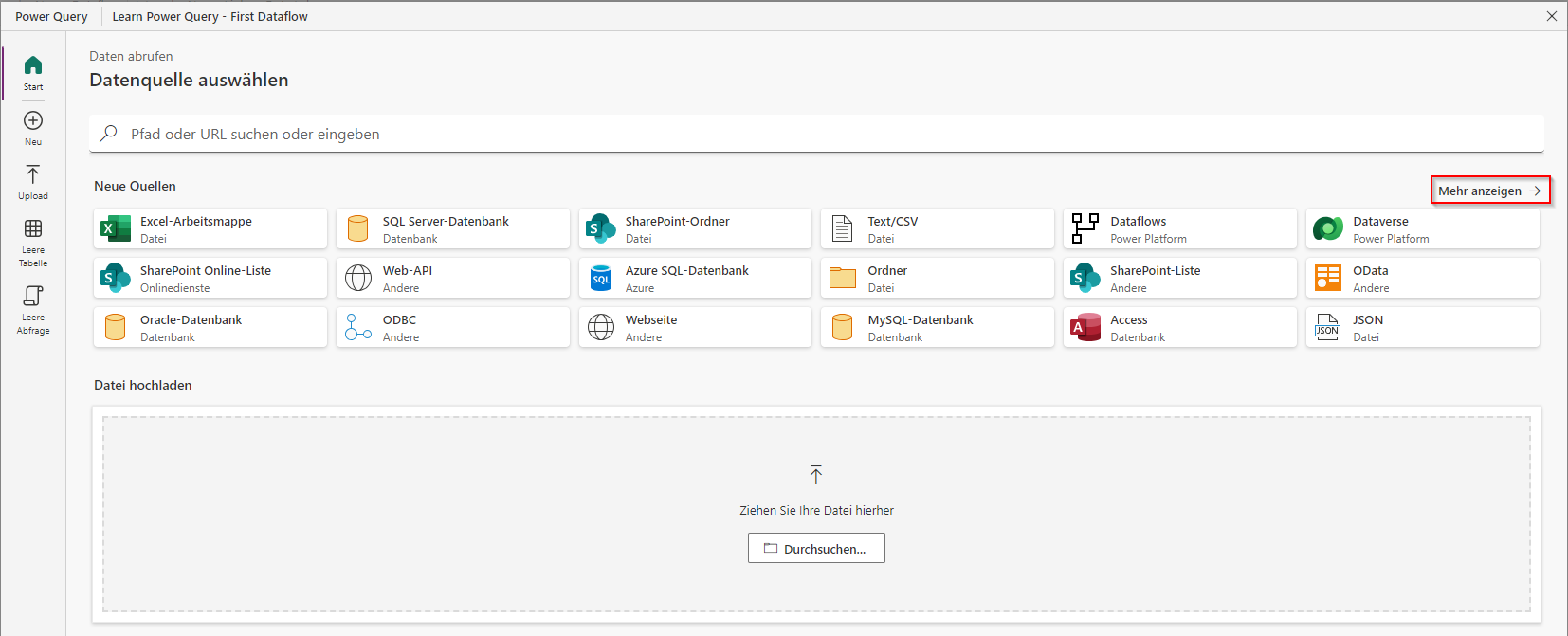 Einen Datenfluss mit Power Query erstellen